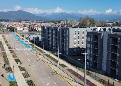 Proyecto emplazado en cruce Av. Compañía con Av Circunvalación, dará conectividad a muchas viviendas existentes. Iluminación Fotovoltaica en exteriores, Sala Multiuso, Piscina, Quinchos, Equipo con máquina de ejercicios y juegos, todo unido por un eje Central. Aislación térmica EIFS, caja escalera cerrada, medidores y Shaft independientes. Ventana PVC blanco, piso vinílico, terraza en todas las tipologías, todas tipologías sobre 60 m2.